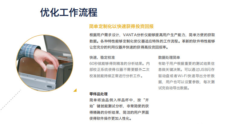 近年來潤滑油分析應(yīng)用日益增多,很多磨損金屬分析實驗室每天要分析幾百個樣品,因此,既具有低濃度元素的分析能力,又具有大量樣品的測量速度及效率,就成為一個實驗室的首要選擇。例如:OLYMPUS 油品分析儀具有多元素同時測定快速和準確的優(yōu)點。