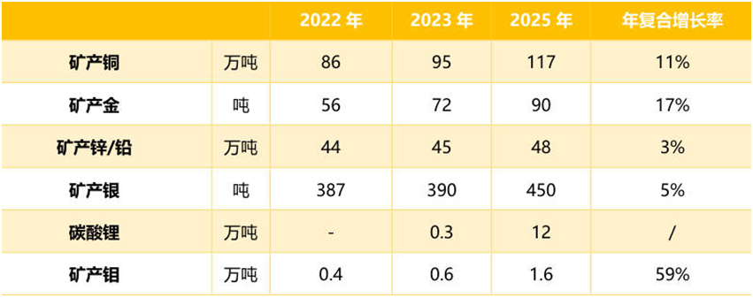 紫金擴產計劃很明確,卡莫阿-卡庫拉銅礦等諸多世界級礦山仍在擴張期,去年收購南美洲最大的在產金礦之一 Rosebel 金礦、收購國內最大金礦海域金礦30%權益,收購 20%股權成為招金礦業(yè)第二大股東,強勢收購打下了其礦產金第二階的高增長的基礎。按照2023年1月30日新修訂的《三年(2023-2025 年)規(guī)劃和 2030年發(fā)展目標綱要》,明確到2030年綜合指標排名進入全球一流礦業(yè)公司行列,銅、金礦產品產量進入全球 3-5 位,鋰進入全球前10位,發(fā)展規(guī)劃清晰,成長潛力較大。
