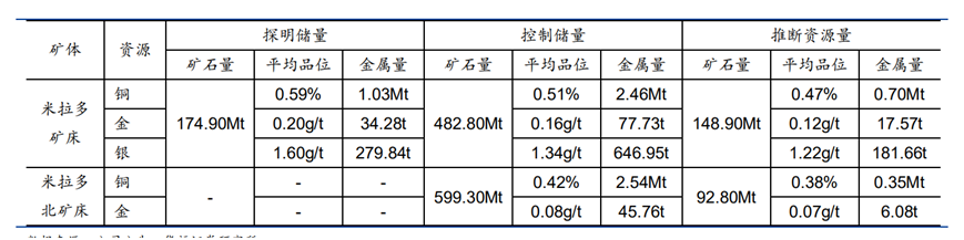 米拉多銅礦床一期于2021年達(dá)產(chǎn),銅礦石的處理能力為 2000萬噸/年,每年產(chǎn)出約9萬噸銅金屬量對應(yīng)的銅精礦,二期設(shè)計擴(kuò)大到 2,640萬噸/年;米拉多北銅礦床二期設(shè)計采選能力 1980萬噸/年。米拉多銅礦整體二期項目預(yù)計于2025年6月建成投產(chǎn),擴(kuò)建后總采選規(guī)模將達(dá)4620萬噸/年,預(yù)計每年產(chǎn)銅超20萬噸。