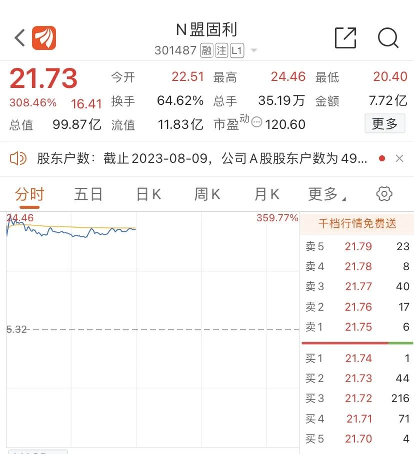 新股盟固利上市首日表現不俗。8月9日,盟固利登陸創業板,盤中一度漲超350%。