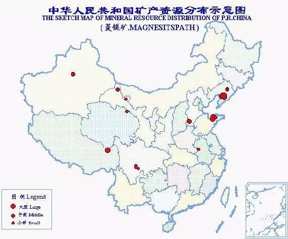 中國(guó)是世界上菱鎂礦資源最為豐富的國(guó)家。總保有儲(chǔ)量礦石30億噸,居世界第1位。我國(guó)菱鎂礦的重要特點(diǎn)是地區(qū)分布不廣、儲(chǔ)量相對(duì)集中,大型礦床多。探明儲(chǔ)量的礦區(qū)27處,分布于9個(gè)省(區(qū)),以遼寧菱鎂礦儲(chǔ)量最為豐富,占全國(guó)的85.6%。