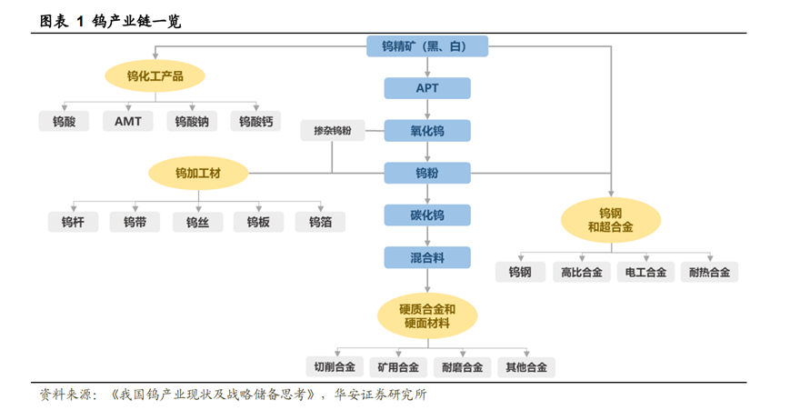 鎢是極其稀缺和不可替代的戰略性資源,具有高熔點、高硬度、高密度、導電性和導熱性良好、膨脹系數較小等性質。鎢制造的硬質合金被譽為“工業的牙齒”,廣泛應用于軍工、航天航空、機械加工、冶金、鉆井、礦山工具、電子通訊、建筑等領域。而鎢絲是照明、電子、光伏等行業的關鍵材料。