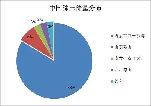 中國(guó)稀土資源的分布呈現(xiàn)出“北輕南重”的特點(diǎn),即北方地區(qū)以輕稀土為主,南方地區(qū)則以重稀土為主。江西贛南離子型稀土資源儲(chǔ)量占全國(guó)重稀土資源保有儲(chǔ)量的60%以上,而贛州儲(chǔ)量就占到全省的90%以上。