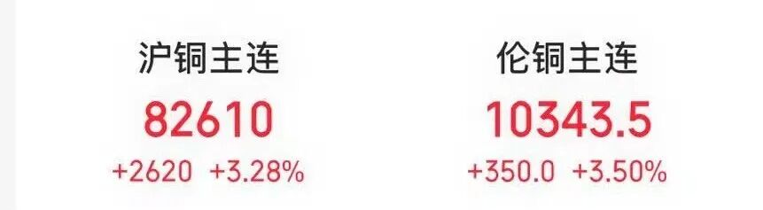 商品方面,全球銅價(jià)大幅上漲。倫銅價(jià)格漲3.50%,創(chuàng)2024年6月以來最高水平;滬銅價(jià)格漲超3%。