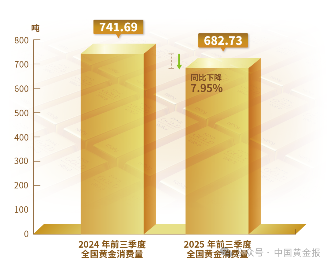 黃金消費(fèi)量682.73噸同比下降7.95%