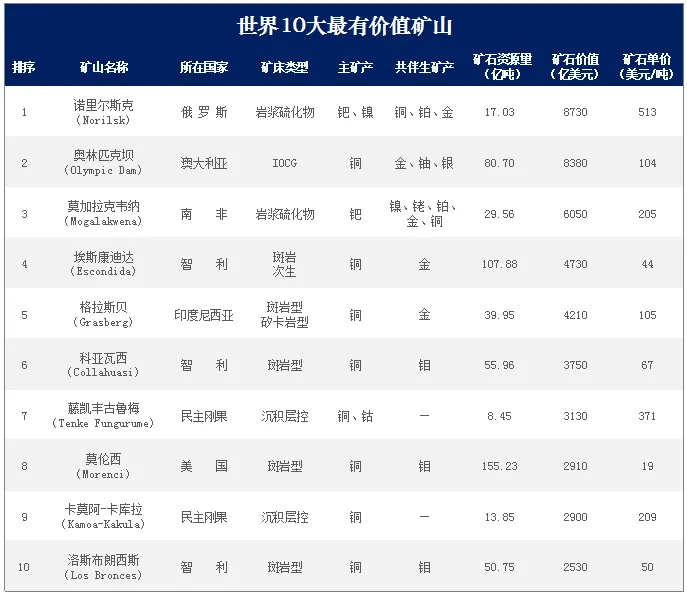 2022年全球最具有價值最高的十座礦山有哪些